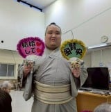 大相撲初場所が終ったばかりのお忙しい中、西予市出身の力士、風賢央関、風佑城さんが